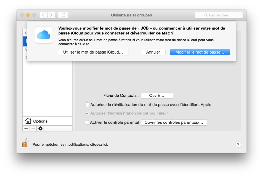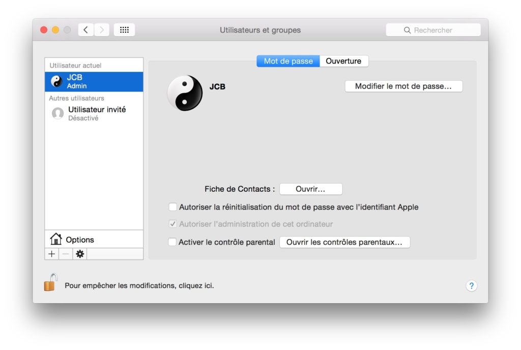 J'ai oublier aussi de précisé que j'ai accès à mon mac que je n'ai pas besoin de mot de passe administrateur pour rentré dans ma session mais uniquement pour faire ou apporté des modifications que la il me demande le nom et le mot de passe.