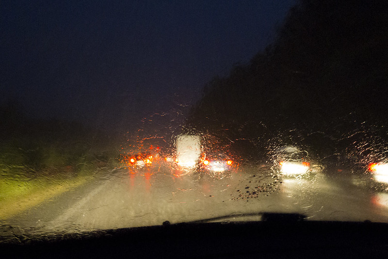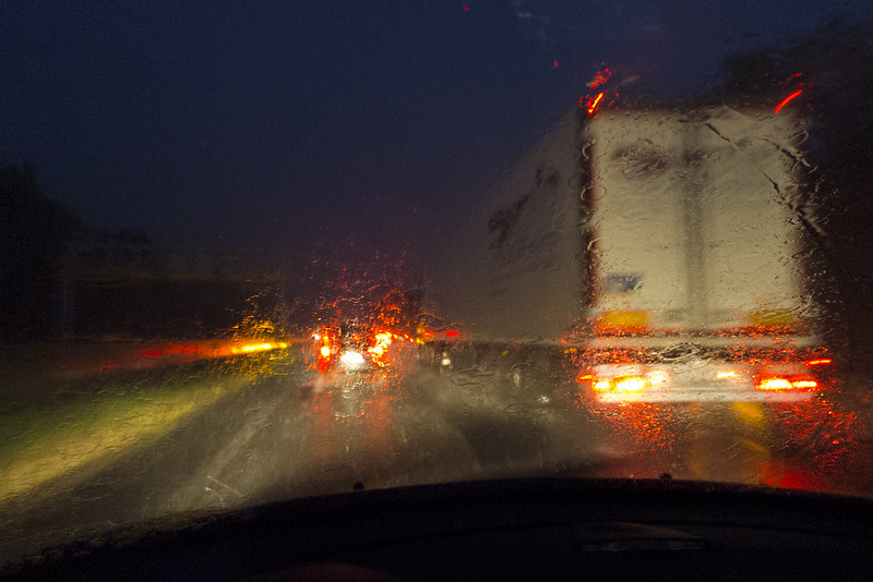 Je prends mon petit télémétrique que je traîne partout pour faire le contraire de ce que je fais dhabitude (photo sur pied ou portrait en lumière artificielle). Je fais le net sur les gouttes du pare-brise et je déclenche. Limage numérique qui vient remplacer la vue réelle dans le viseur est bien trop claire. Je descends dun cran. Je vois les feux passer au vert et je déclenche. Tout nest plus rouge, tant pis.