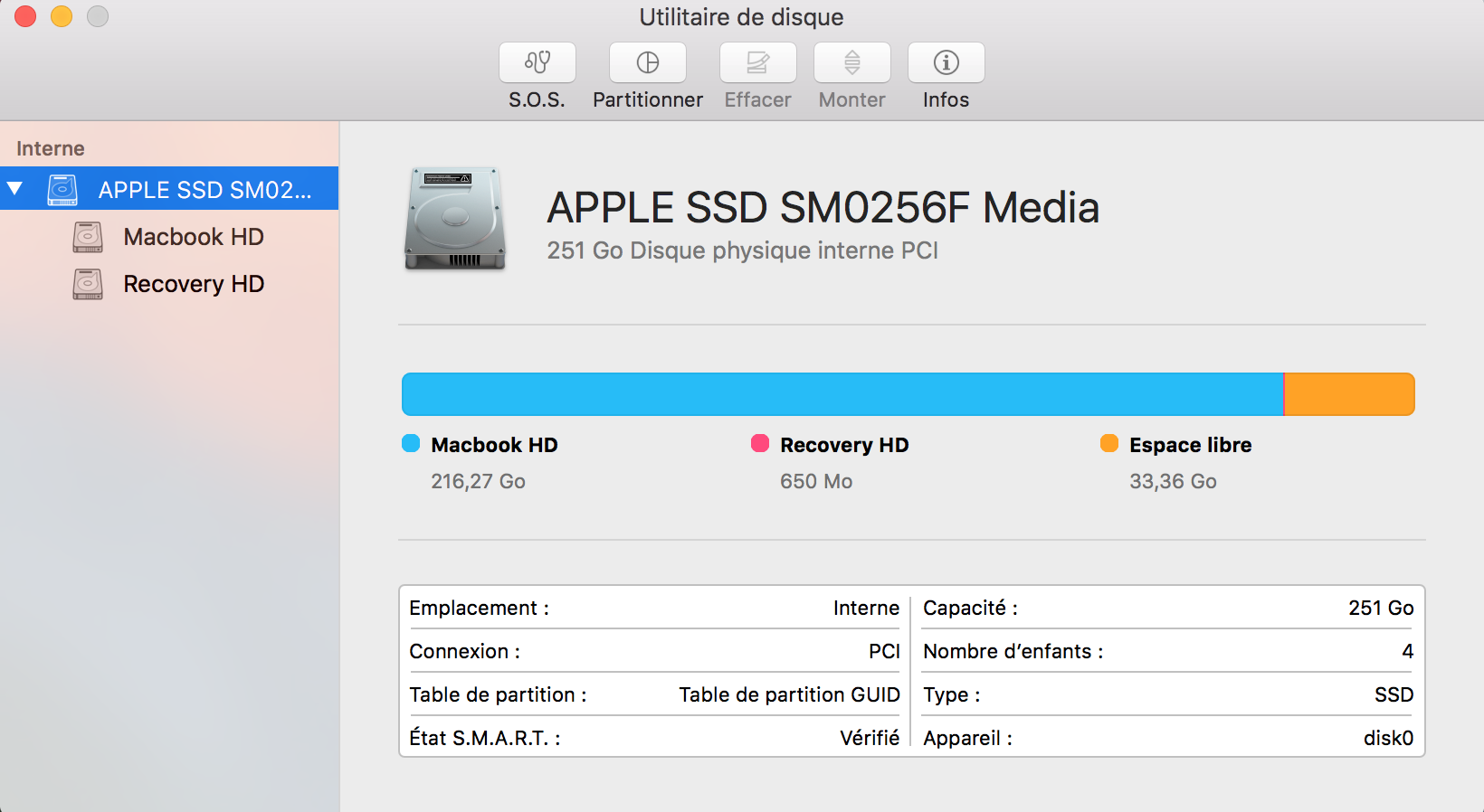 Je me retrouve avec 3 partitions : Macbook HD, Recovery (bizarre qu'elle apparaisse non ?) et une sans nom de 33Go (qui servait pour Ubuntu).