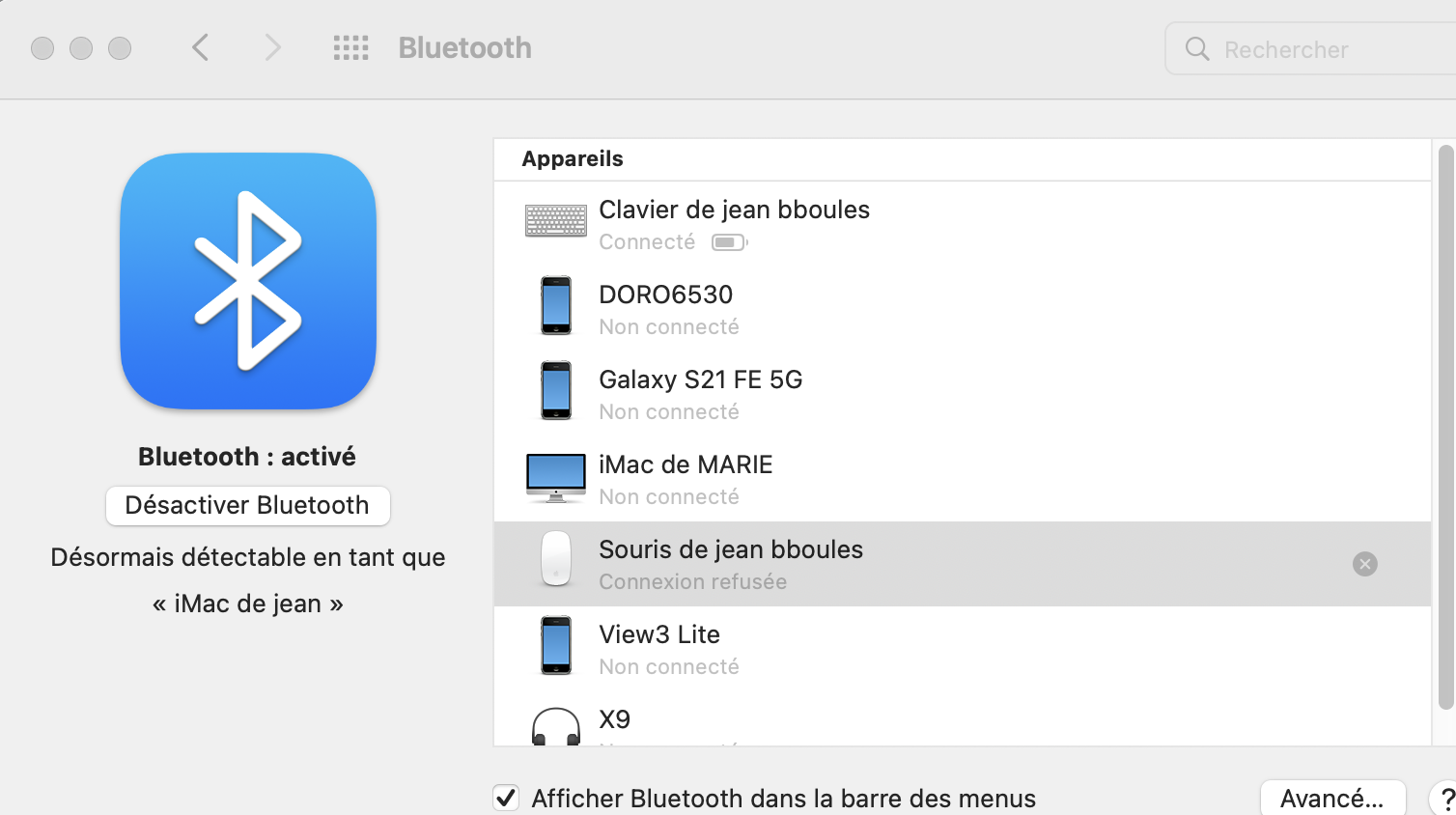 Mon clavier est bien connecté ainsi que d'autres accessoires, mais pas la souris.