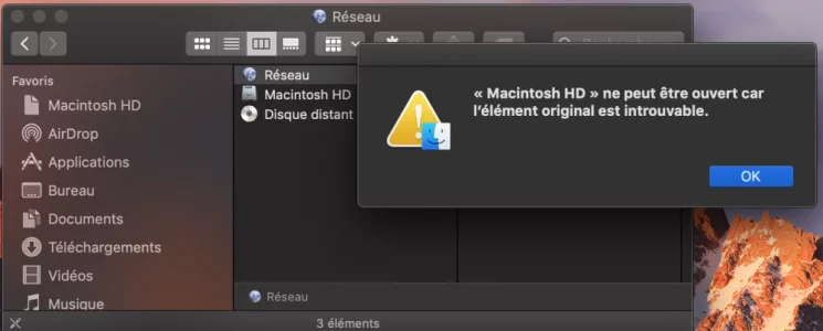 Donc "Macintosh HD" est différent, c'est pour ça que le raccourcis/favoris ne fonctionnait plus.